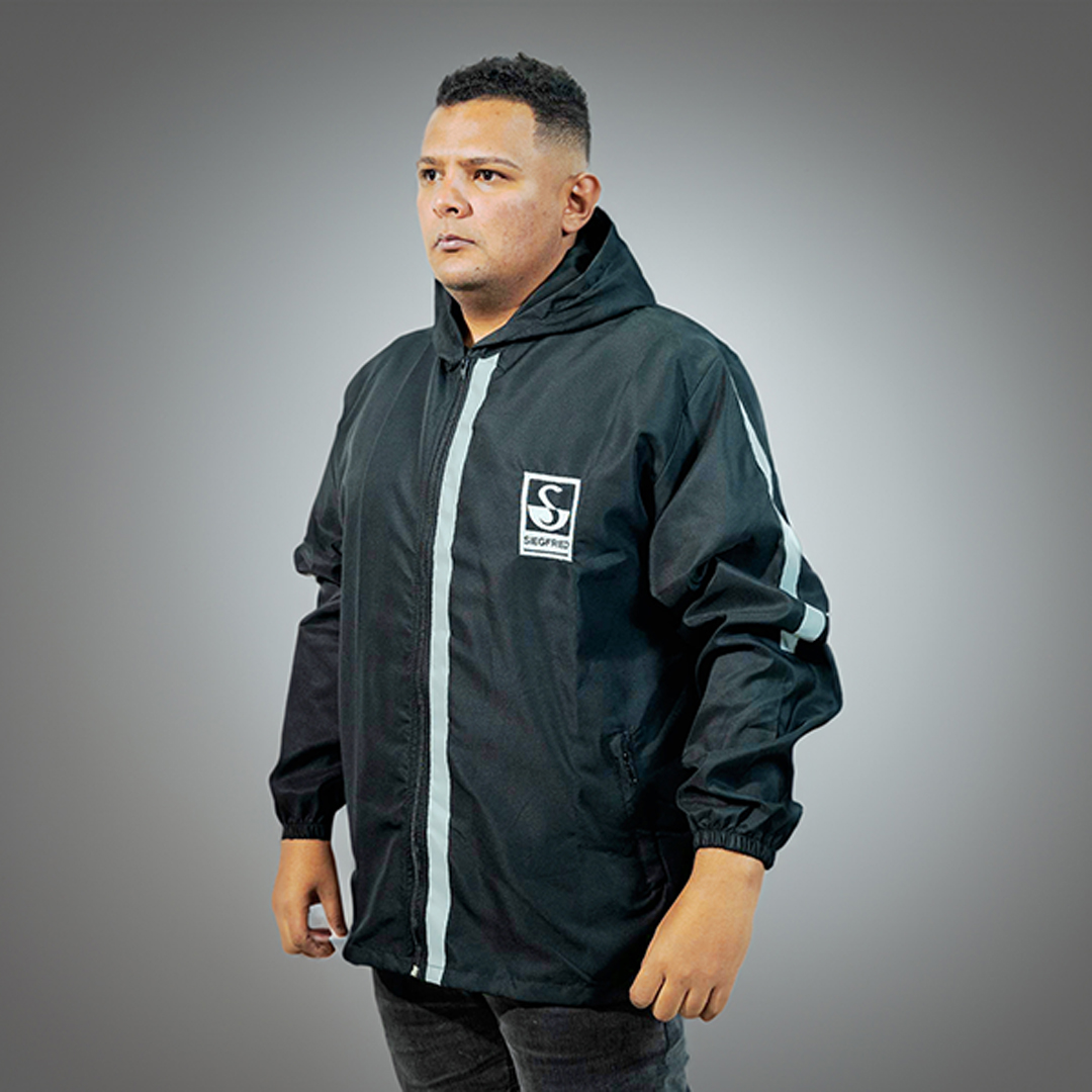 Descripción Descripción Chaqueta confeccionada en antifluido nacional con capota, cierre frontal en cremallera , 2 bolsillos laterales , banda reflectiva frontal en espalda y mangas con puños en elástico. Productos relacionados ChaquetasChaqueta Chicago ChaquetasChaqueta Kansas ChaquetasChaqueta Filadelfia